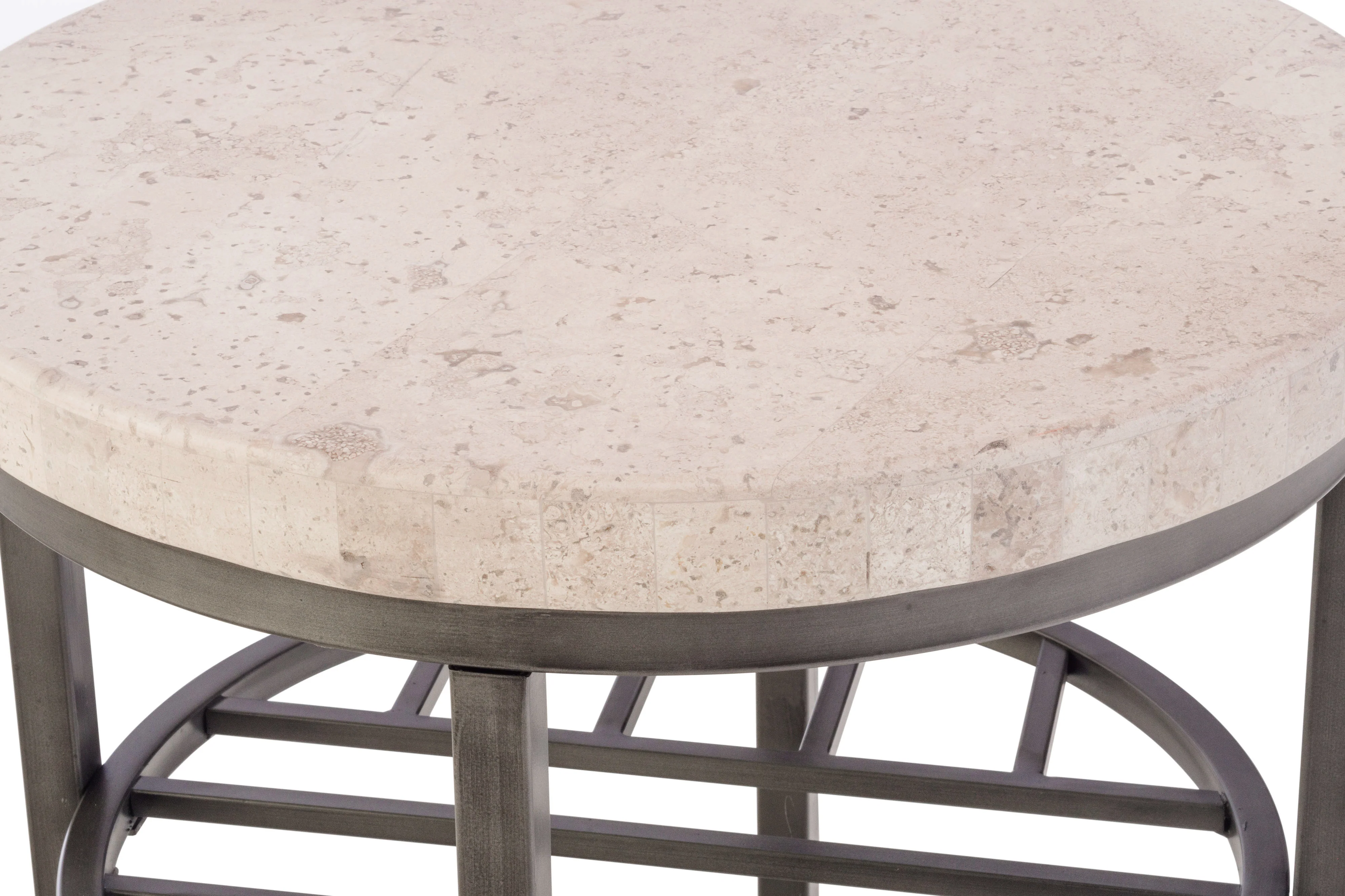 The Capri Round Side Table offers a transitional look that can complement its surroundings, instantly! Constructed of an alabaster travertine top and black metal base, the mixed materials flawlessly combine to create a contrasting work of art! The two fixed shelves are the perfect platform for storing magazines, games, or a basket with remotes and living essentials.