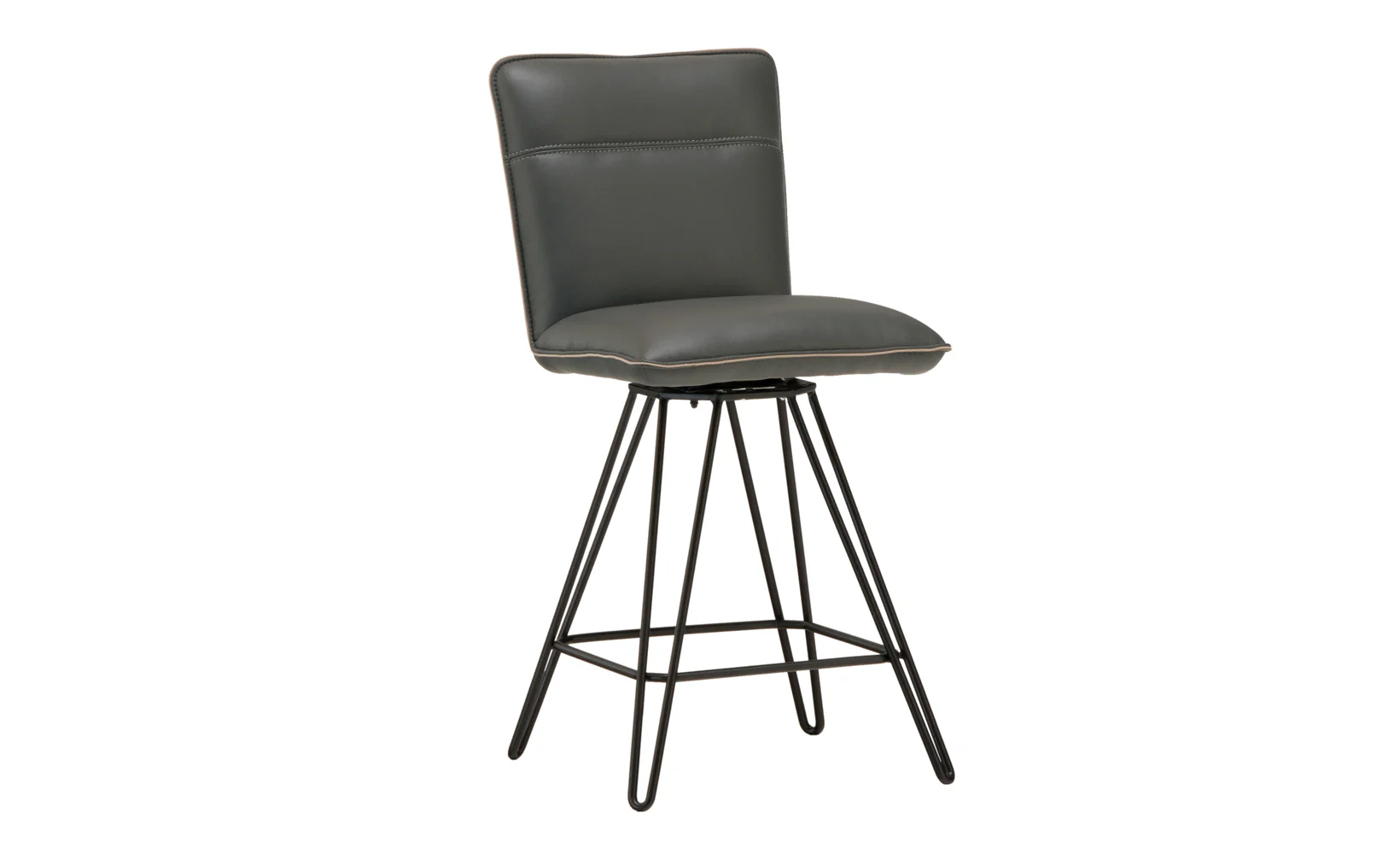 A soft to the touch dining chair. Upholstered in a neutral fabric, the Demi Counter Stool will be a great addition to your dining room or counter seating. The molded metal legs add visual height, and a modern feel to your home. Stay on trend with the Demi Counter Stool!