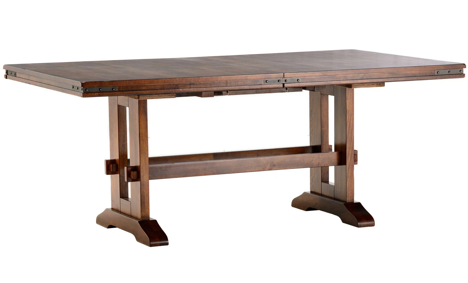 Solid and sturdily built, the Mango Trestle Table from Winners Only is an excellent example of the strength and durability of mango wood. Sustainably harvested, mango has a beautiful grain and depth that gives richness to this slightly distressed, industrial table.