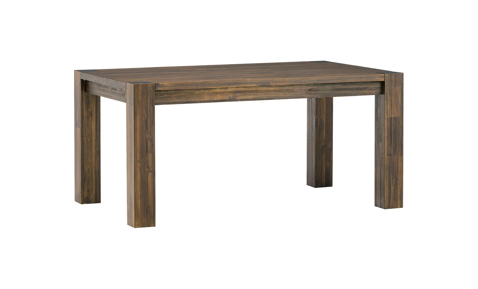 The Meadow Dining Table is a simple design with rustic inspiration, clean lines, and unique through legs. Wire brushing offers a slight distressed look while the warm finish complements many design styles. Includes two leaves providing additional space for entertaining guests.