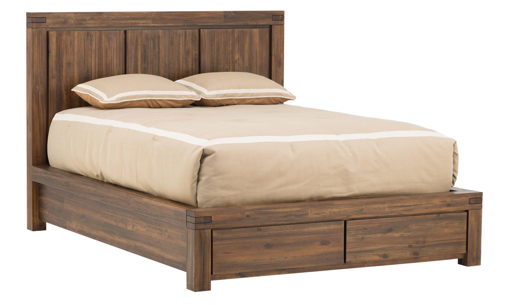 The Meadow Bed has a simplistic design with rustic inspiration and clean lines. Wire brushing offers a slight distressed look while the warm finish complements many design styles. Includes two storage drawers that are easily accessible and provide additional bedroom storage.