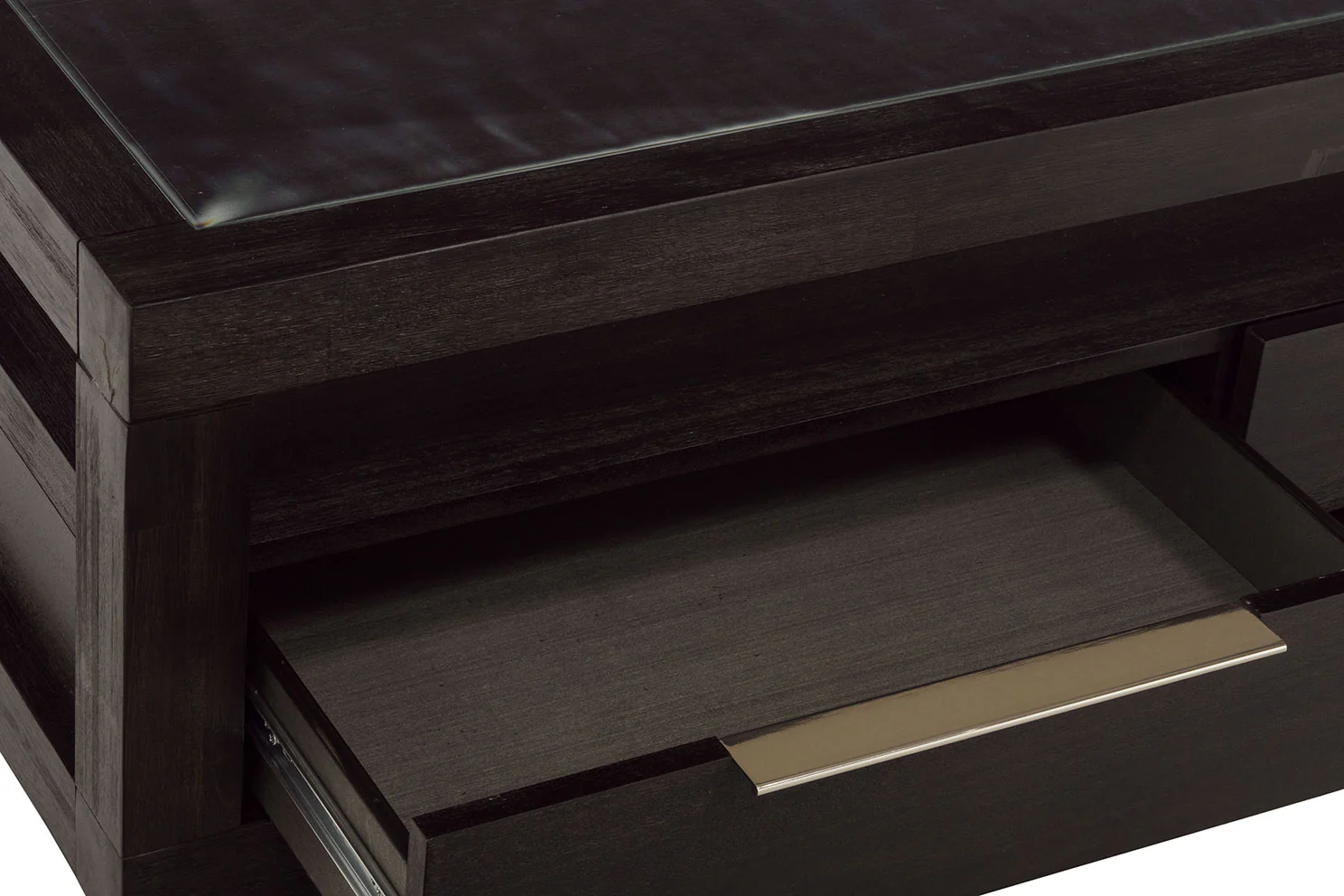 Modern with clean lines, this coffee table truly makes a statement! The rich grey finish, glass top, and sliding drawers offers both style and function. Create a secluded getaway in your home with the Oxford Collection!