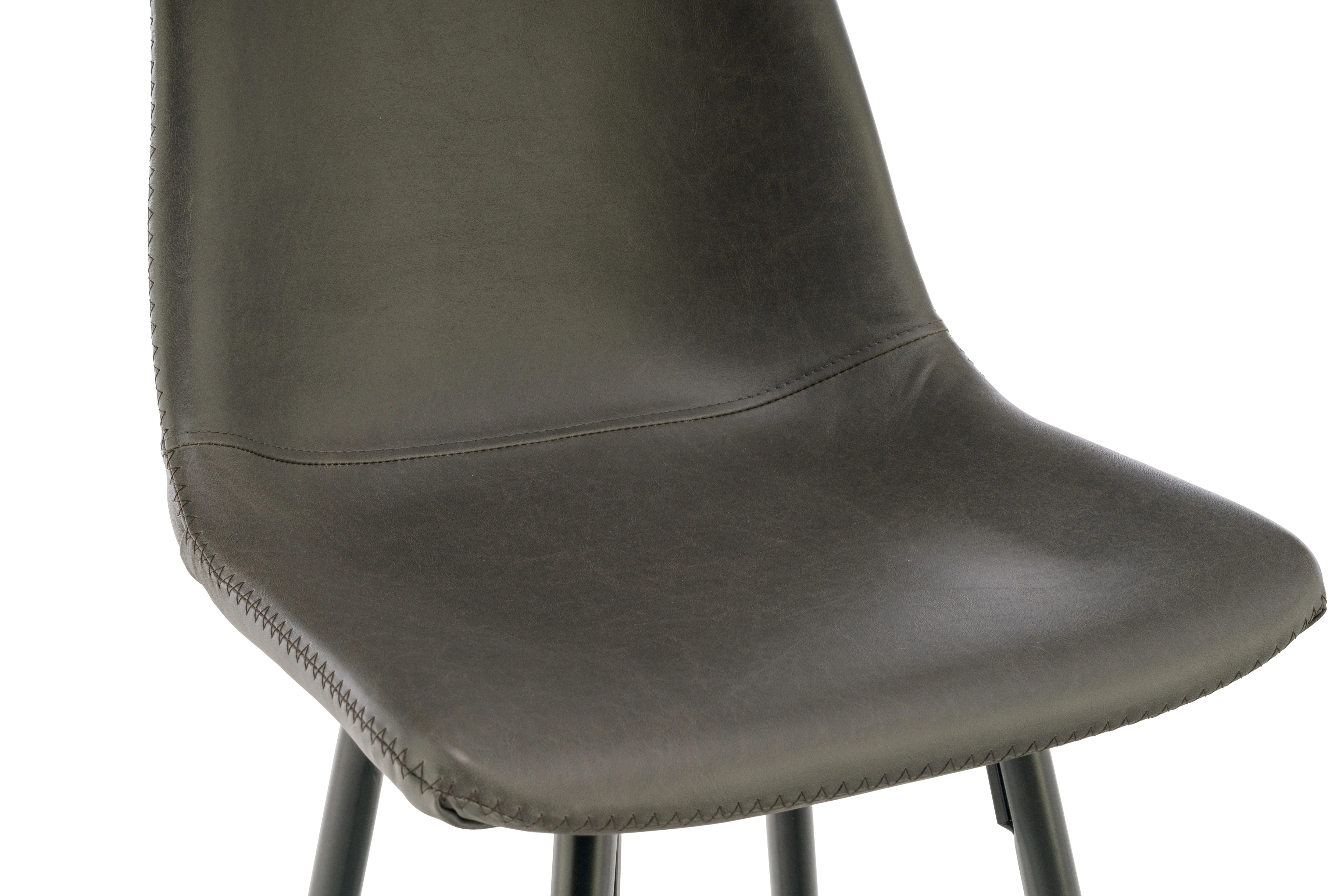 The Rufina Counter Stool displays slightly tapered legs, bucket style seating and polyurethane leather-like fabric exterior. Stitching detail surrounds the seat and built-in foot bar adds comfort to the design!