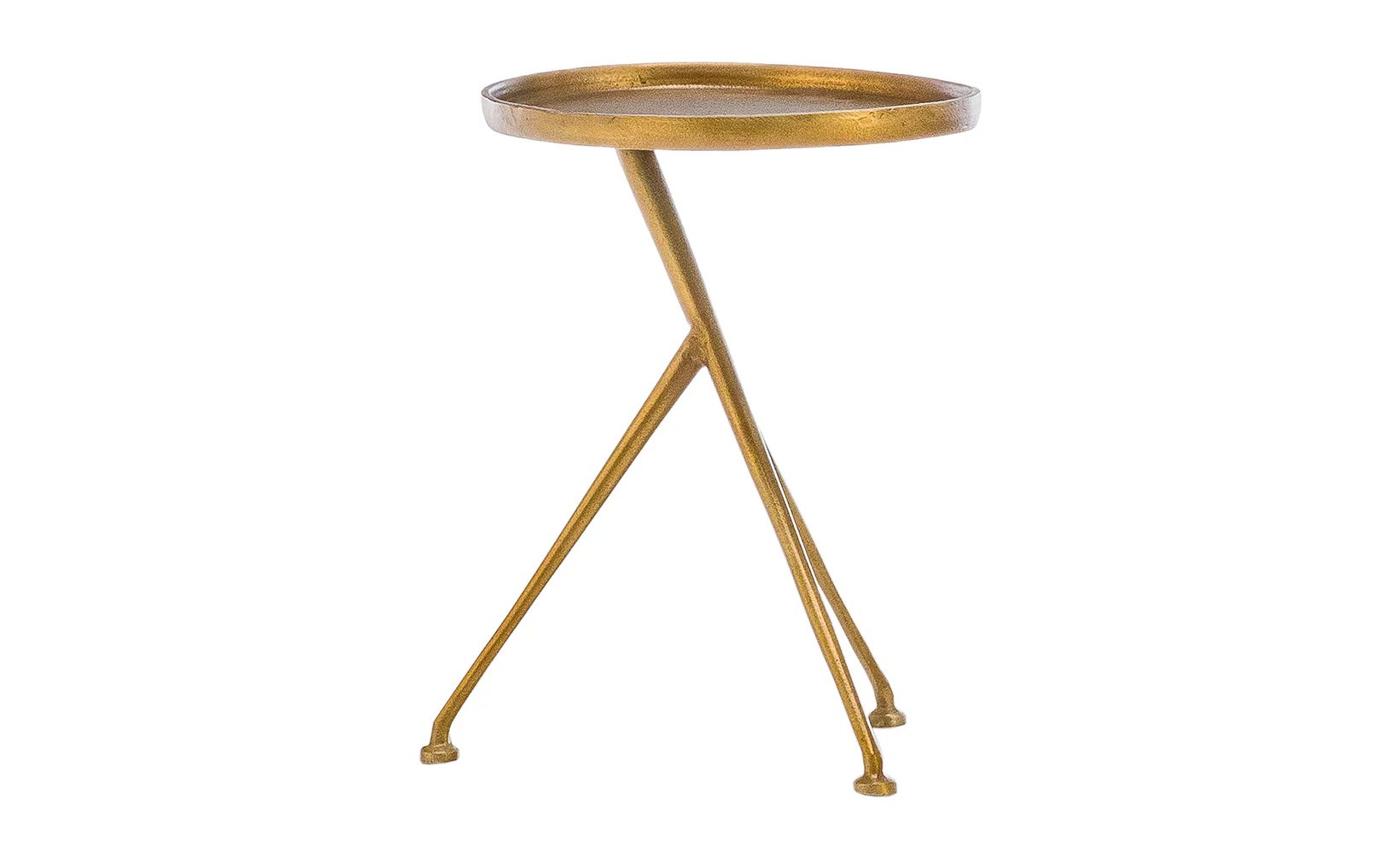 The tripod table with a cleverly balanced twist. Angular cast aluminum is finished in raw brass to accentuate highs and lows. Great indoors or out— cover or store indoors during inclement weather and when not in use!