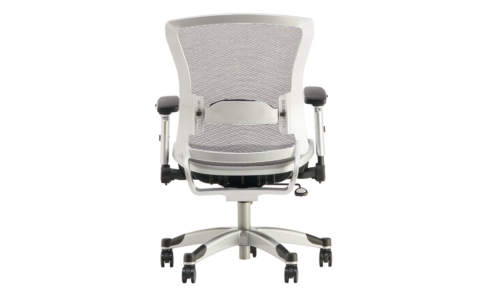 The Space Platinum Chair is a modern take on the traditional desk chair. Its wheel casters and adjustable flip arms make this chair both convenient and functional. The mesh back and sleek white finish create a stylish look which will become an immediate favorite.